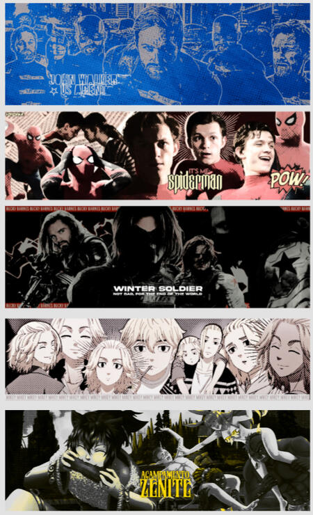 I like to constantly innovate my editing style, which is why many of my works differ from one another. But I usually create transparent icons to be used with the header and a double pinned: transparent image + gif. This is completely adaptable.